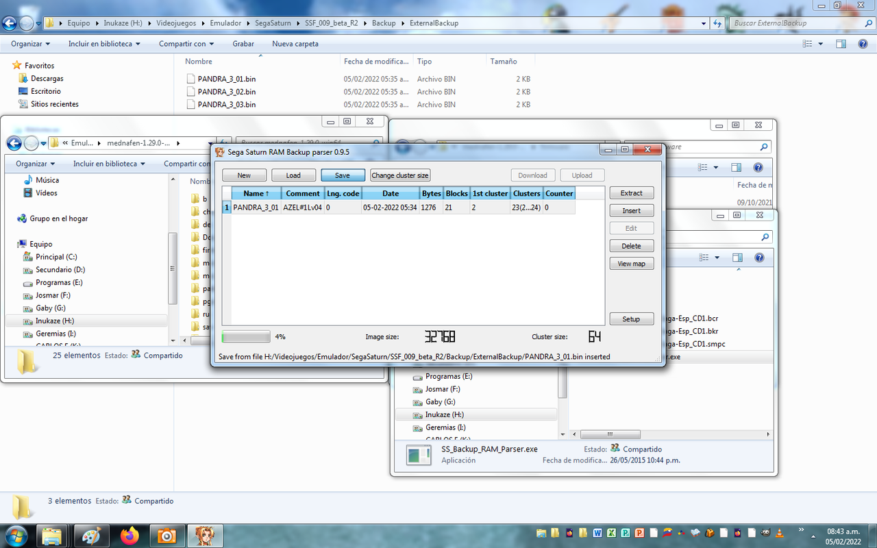 04 ) Insert / Import your raw data from SSF (if you had inside the “InternalBackupRAM.bin” you can use “SS Backup RAM Parser” for extract raw data but on my case that not working with the SSF version i had use, because of that i prefer enable “Hook Backup Library” option.