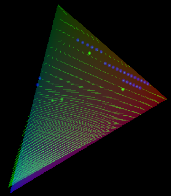 Using this shitty program, I made that same kind of diagram as with N. W. Parker’s paper. The result is similar. Still, this TV’s white is about 95% of the brightness of the outer near-perfect area, which means this might be using some improved method, not exactly the same thing.