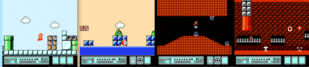 @Nesguy I found definitive proof that games are made with temperature in mind… This is Mario in 1 Japan, 2 USA in miami, 3 Europe in spring, and 4 Europe in summer.