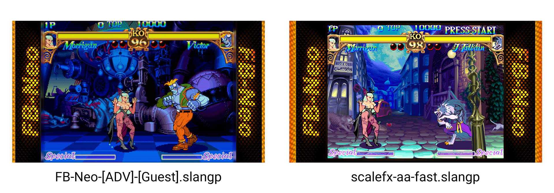 Currently, I’m using Duimon’s Mega Bezel as my main preset collection. I love the reflection and overlay effects, but I’m trying to swap the core shader for ScaleFX AA , which is my preferred look for 2D titles.