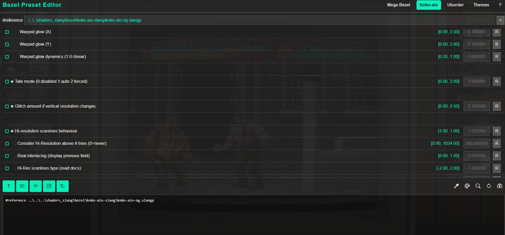 Text Area Synchronization: Typing or pasting a setting into the text area will automatically highlight the corresponding option within the menu.
