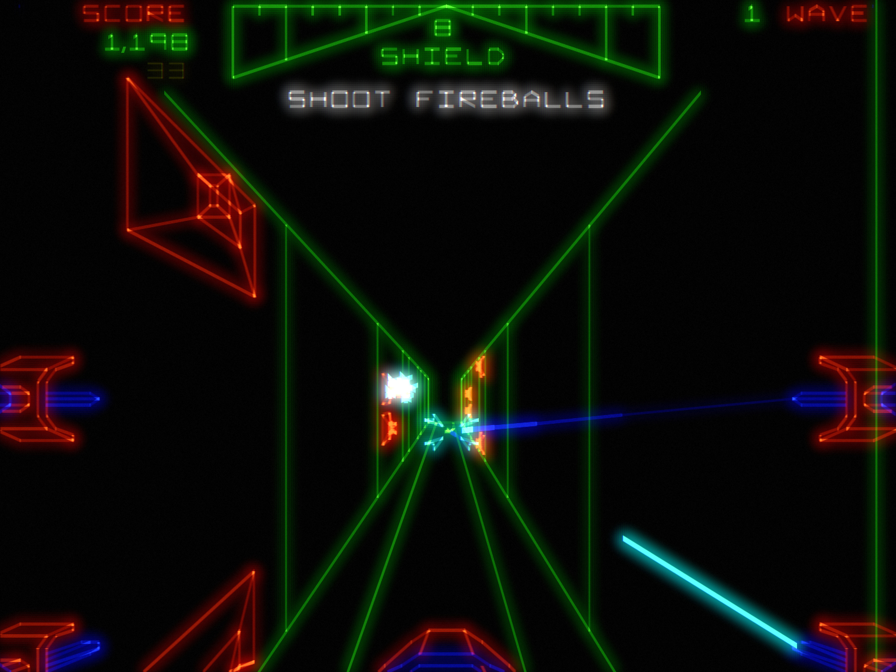 I’m going by memory and it’s been a long time, but I don’t remember vector games having such thick, glowy lines. They were more thin and crisp, with maybe just a slight glow. The vector dots were pretty visible. Those games had a really disctinct look, which looked modern and Tron-ish at the time.