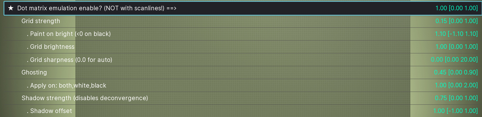 If you were using deconvergence in your custom presets, please multiply previous values of DECON_RX,DECON_RY,DECON_GX,DECON_GY,DECON_GX,DECON_BX,DECON_BY by 1.6.