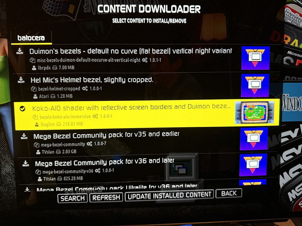 All I see in Batocera is this (see photo). Would there be any way to install / copy your files across manually? How are these files published and where is the repository?