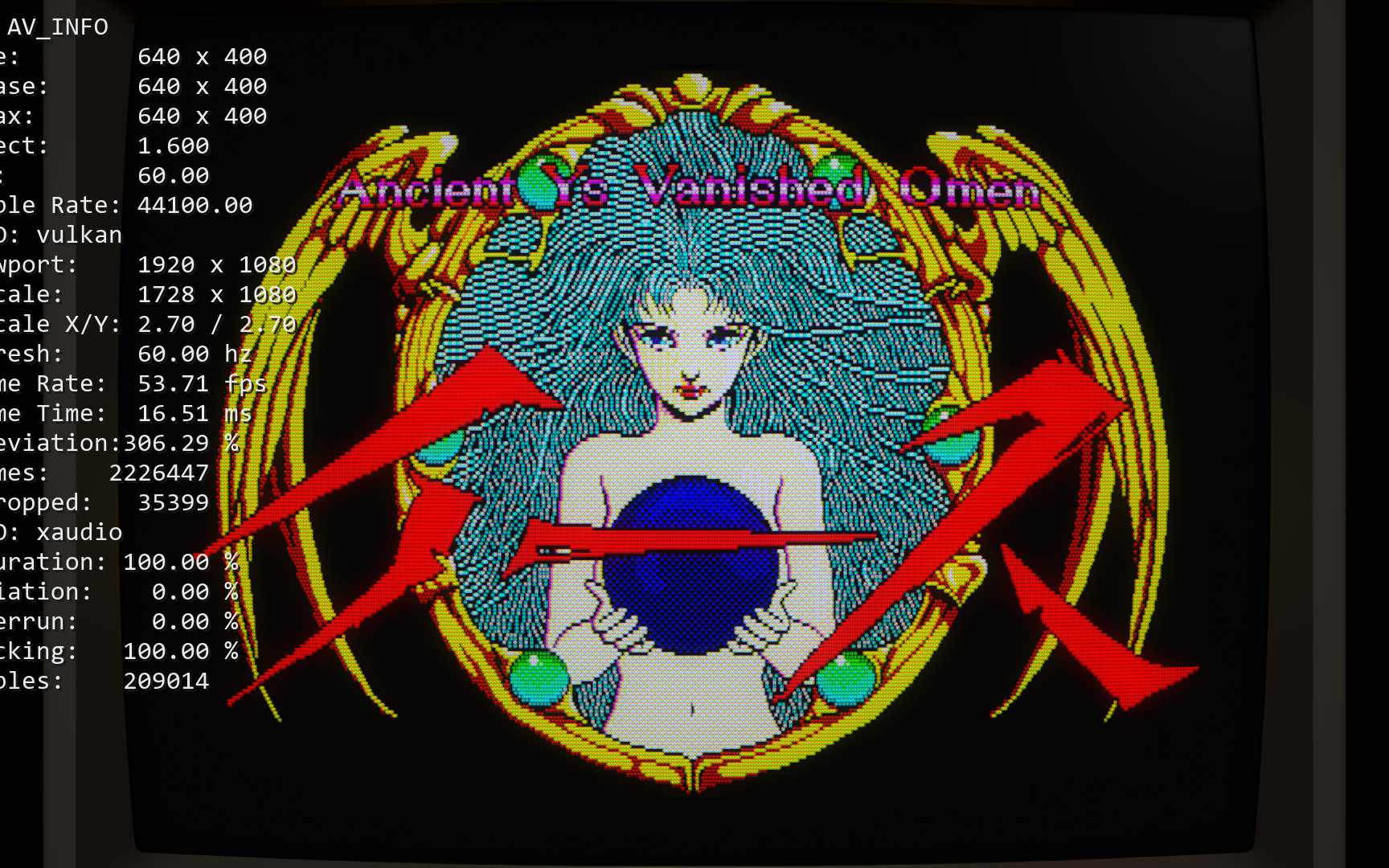 So, the systems are actually the NEC PC-88 and NEC PC-98, which were japanese home computers that came before the PC-Engine/Turbografx console, same company though. The emulators for these systems (QUASI-88 and Neko Project II Kai respectively) are not really at the same level as more mainstream console emulation. I did raise the issue in QUASI-88 libretro core’s github but I got no response and it doesn’t appear to be in active development.