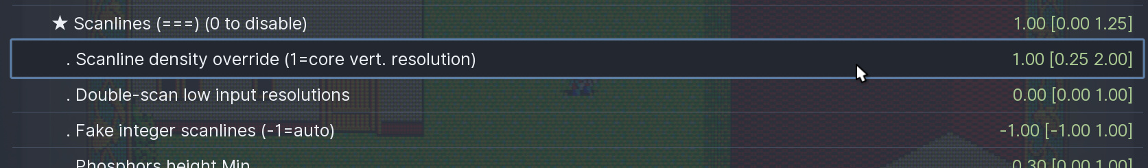 My post took a while to get approved here for some reason, so I decided to looka at your original code yesterday and I was able to do exactly that. I just added a new parameter SCANLINE_OVERRIDE in config.inc and config.globals.inc and changed this block on final_pass.slang from this: