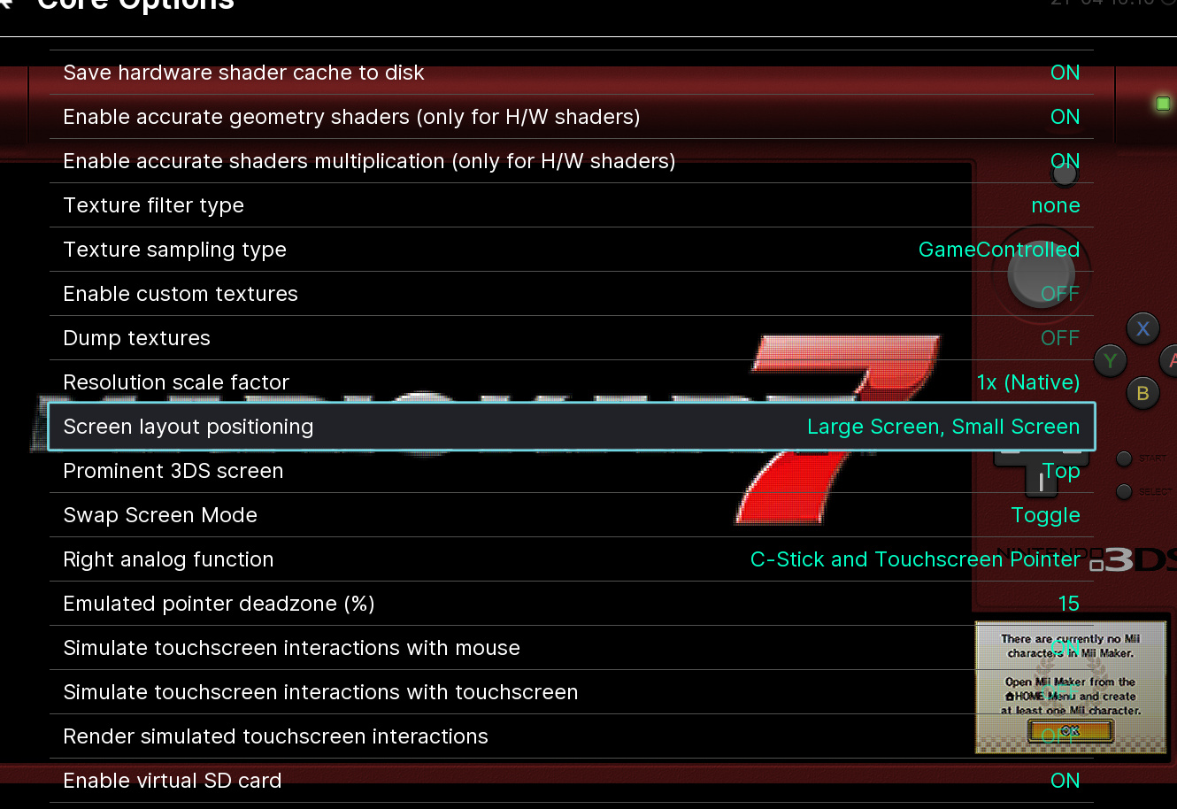 @Elessar84 Answering here about the 3ds preset. If you mean the bezel, @Duimon made one in his pack for koko-aio: