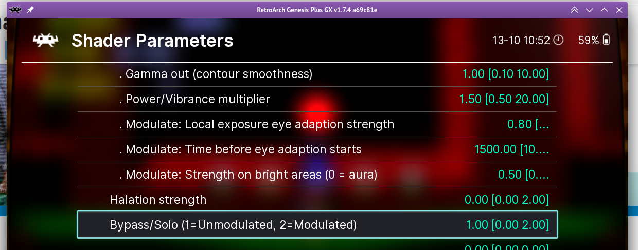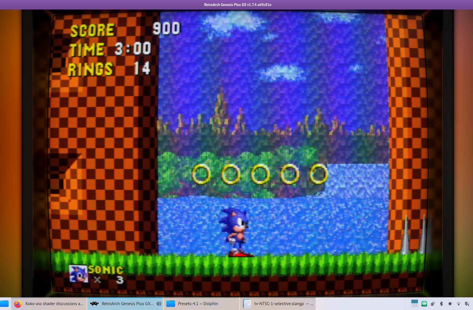Most people seem to like rgb shaders, but I really love the composite or ntsc look. The one of yours I’ve been using for the non-handhelds is ntsc 1 selective. I’ve made a few adjustments, lowering the brightness (input signal gain to 1.75; looks like it’s starting to clip at 2), color artifacting strength to .2, and glow to blur bias to .7. Unfortunately, lowering the blur doesn’t blend the sonic waterfall anymore. Other cores seems seem fine but I kept it at 1 for Genesis. Composite on a real crt is still pretty sharp. It would be nice to have all dithering blended while being sharper. I know that might not be feasible with your shaders which run really well on the steam deck.