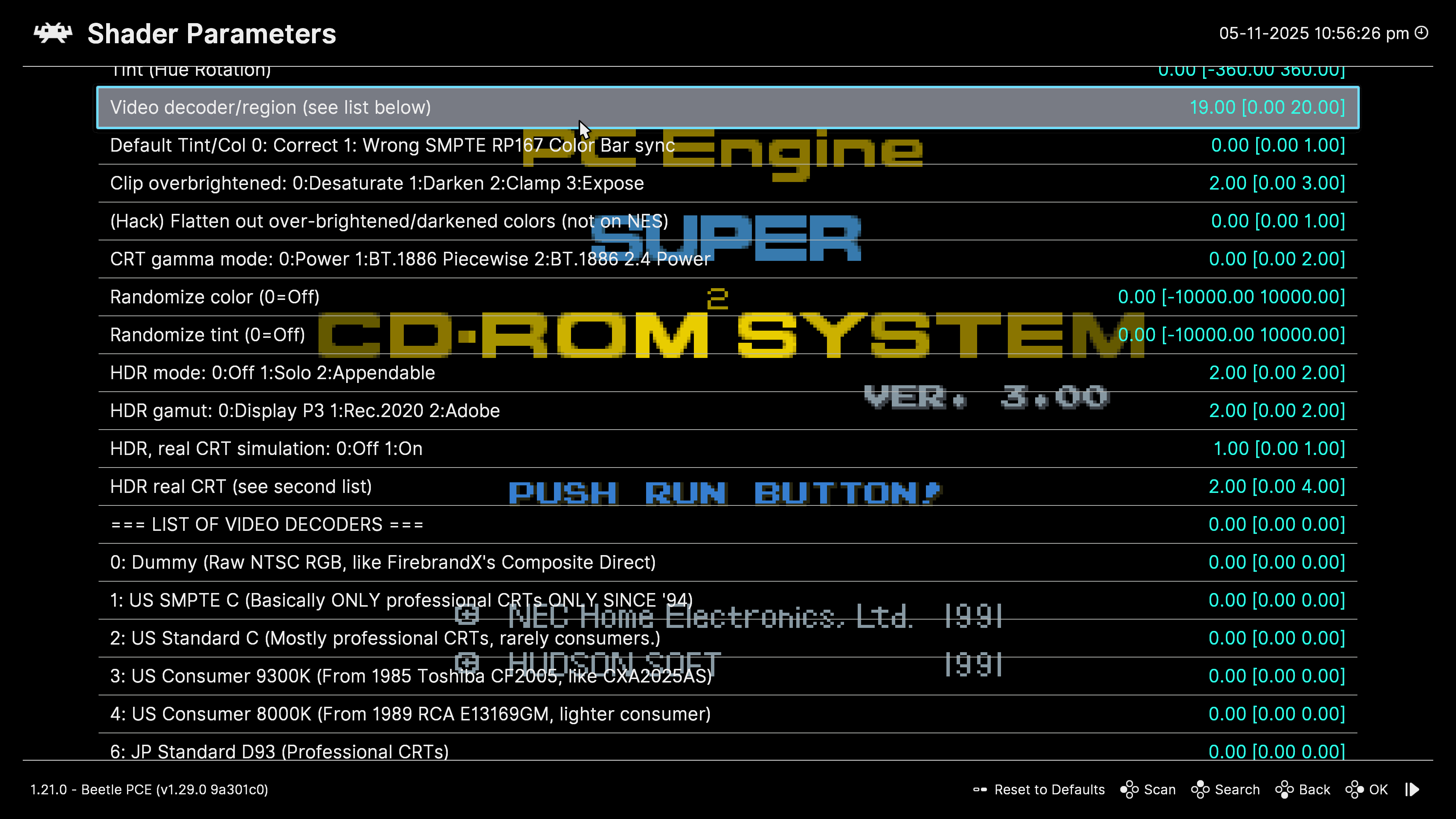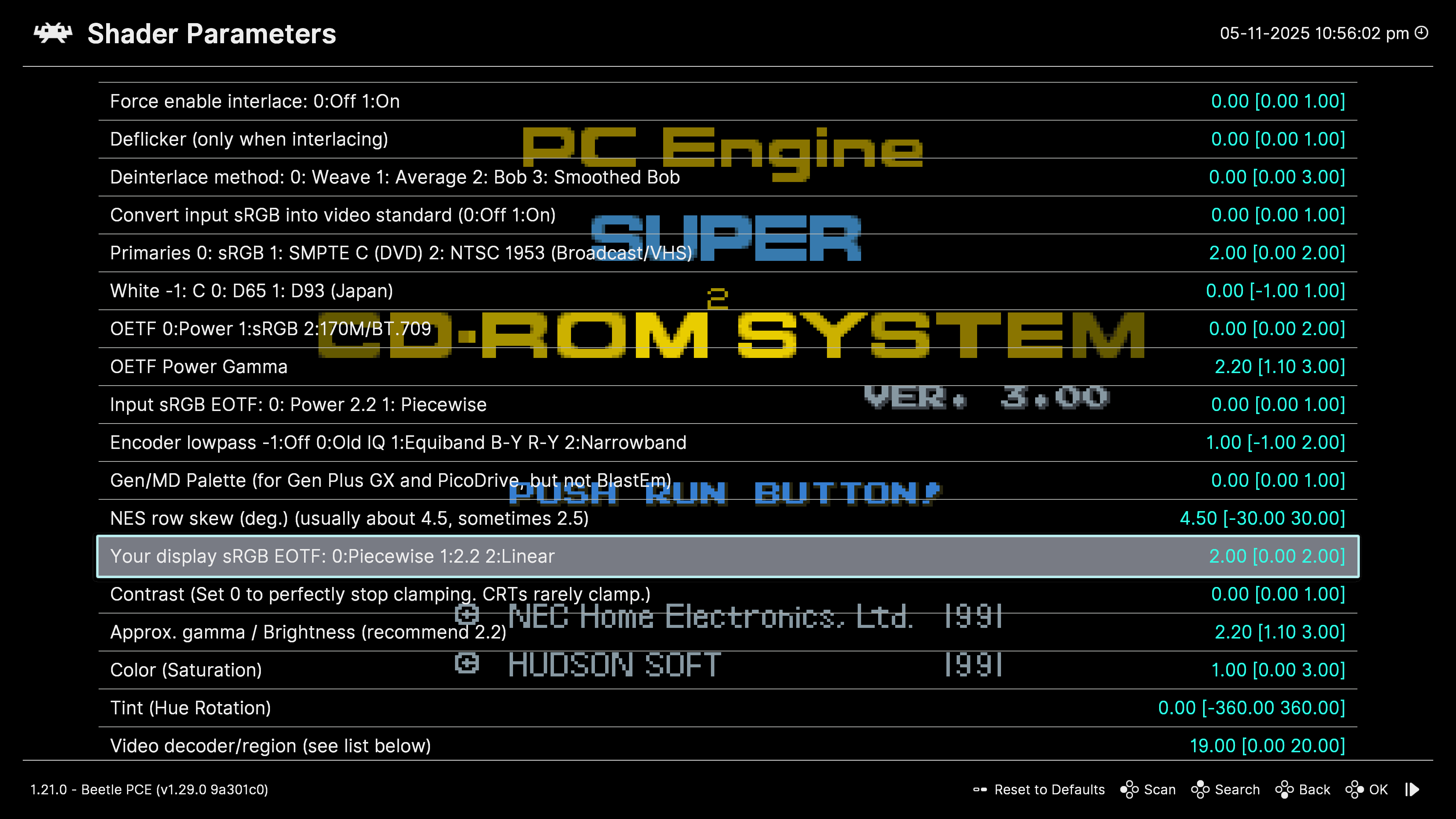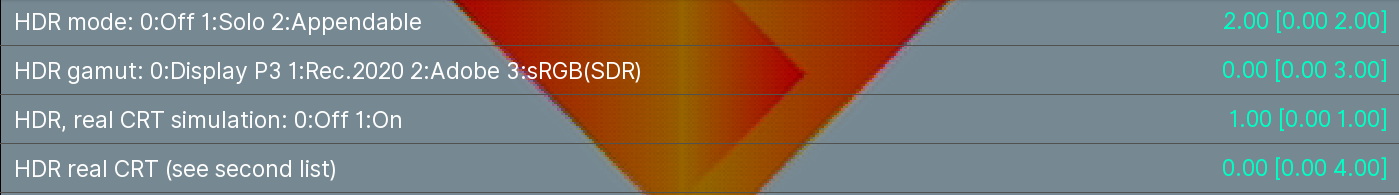 If you use this with a CRT shader, and you accidentally use “Solo” instead of “Appendable”, then that’ll cause the colors to become very washed out because it’s doing the HDR correction twice. On the other hand, if you use it without a CRT shader but forget to use the “Solo” mode, you’ll get an overly deep image instead.