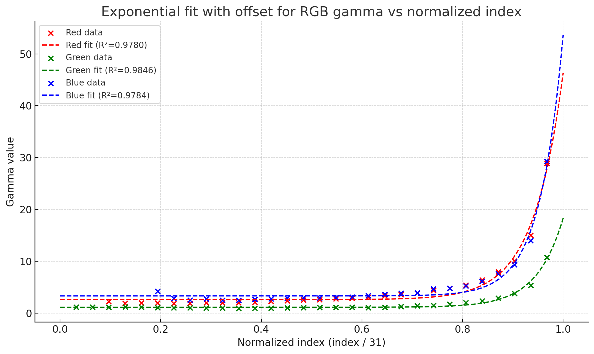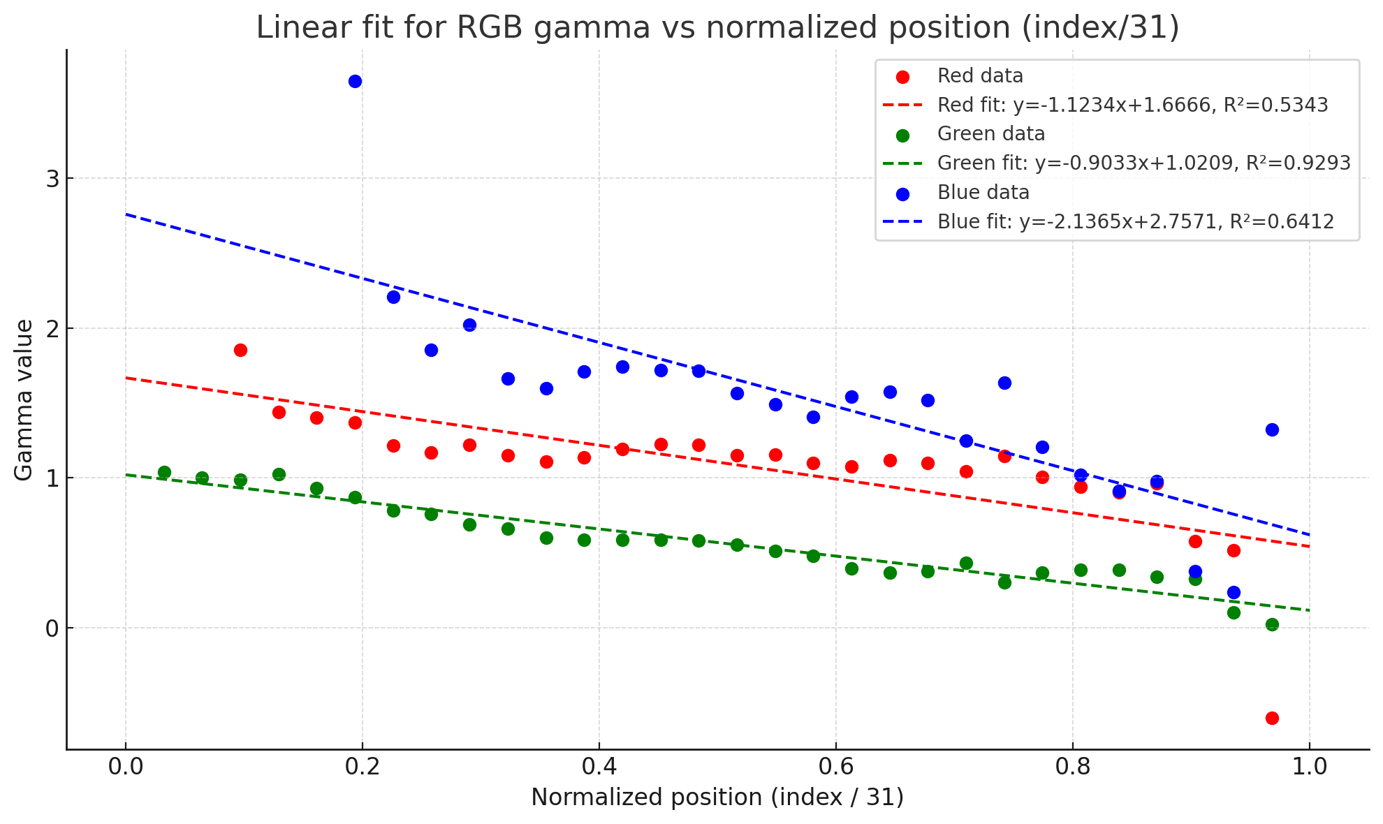 As for GBC, it uses its own abnormal gamma curve. I used my ColorMunki Photo with the SpotRead app to just scan luminance the screen while swapping the greyscale swatches from 240p test suite. I scanned all 32 swatches to produce a much more accurate as to how my GBC displays its own gamma to provide constant details. It also has its colder temps on the greyscale too, which I plan to add in later on.