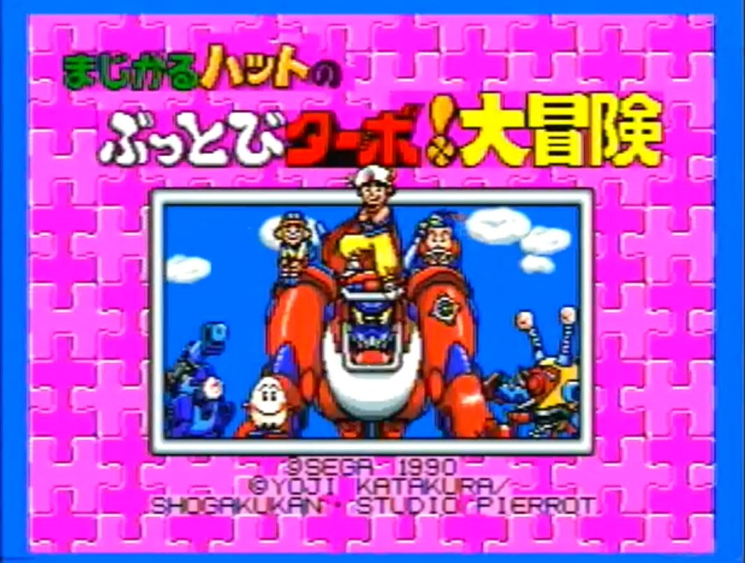 Game pictured is Magical Hat No Buttobi Tabo! Daibouken. From what I could find, the anime intro looks more like the top, and this looks like it could be from real hardware: